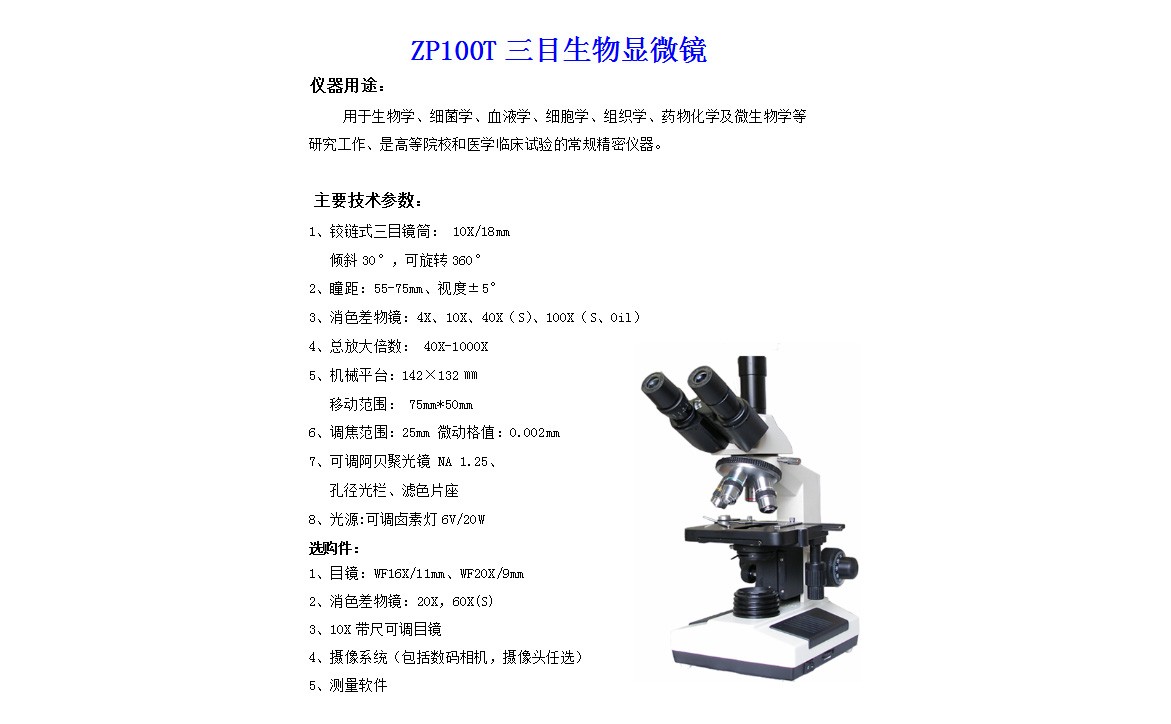 上一頁: 生物顯微鏡 ZP200T三目生物顯微鏡