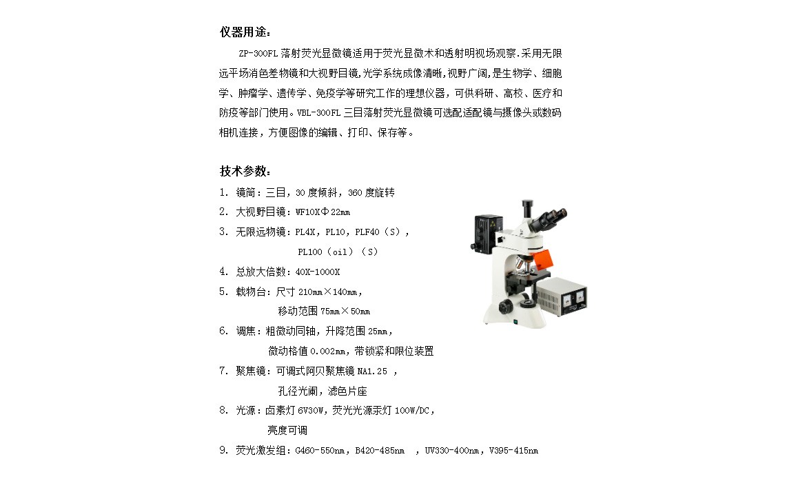 生物顯微鏡 ZP-300FL落射熒光顯微鏡